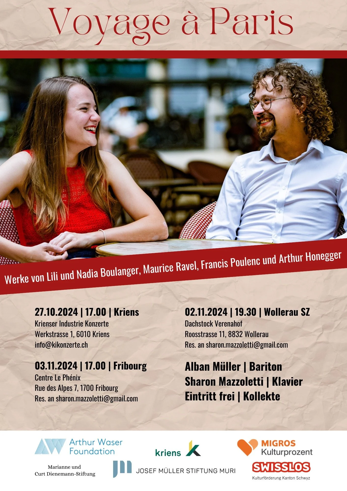 Ihr neues Konzertprogramm widmete das Duo Müller-Mazzoletti Albans Muttersprache. Es erklangen Lieder von Nadia Boulanger, Francis Poulenc und Arthur Honegger, kombiniert mit Klavierwerken von Lili Boulanger und Maurice Ravel.