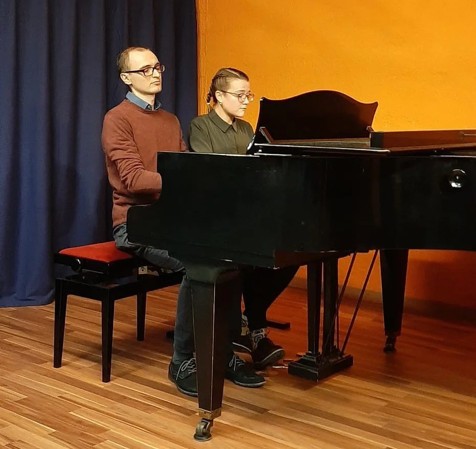 Das Duo Meier-Mazzoletti bildete sich 2020, über unserer gemeinsamen Begeisterung für die Klavierduos von Dmitri Schostakowitsch. Pandemiebedingt debütierten wir Anfang 2021 über einen Livestream mit Paul Hindemiths Walzern «Drei Wunderschöne Mädchen im Schwarzwald». Erst im November 2021 kam schliesslich die Schostakowitsch-Suite op. 6, die uns zusammenbrachte, zur Live-Aufführung. Seither erweitern wir stetig unser Repertoire an Werken für ein oder zwei Klaviere à vier Hände. Unser letztes Programm widmete sich Kompositionen von Germaine Tailleferre, Amy Beach und Madeleine Dring.